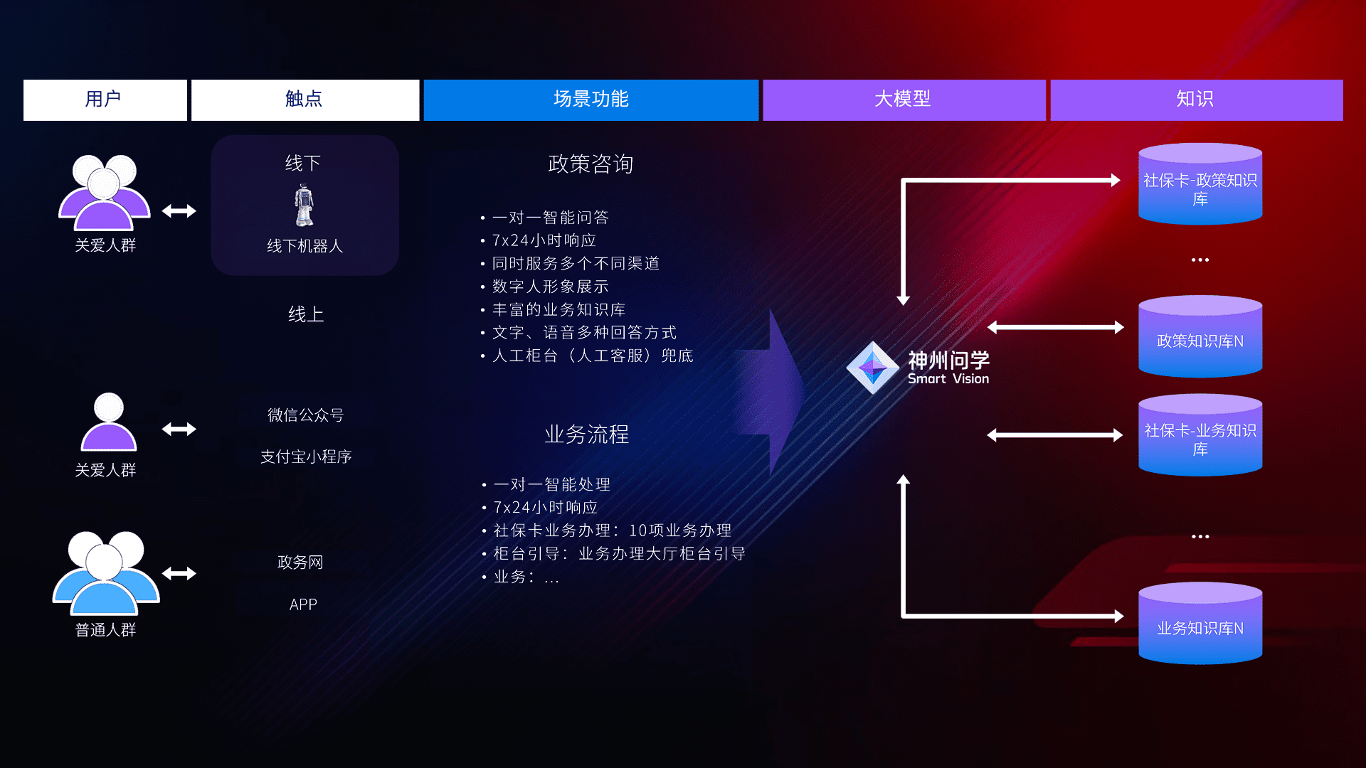 在服务大厅部署客服机器人,,,在线上应用和小程序配置客服数字人,,724小时为群众解答常规问题,,客服机器人无法处理的,,,转现场人工处理。。